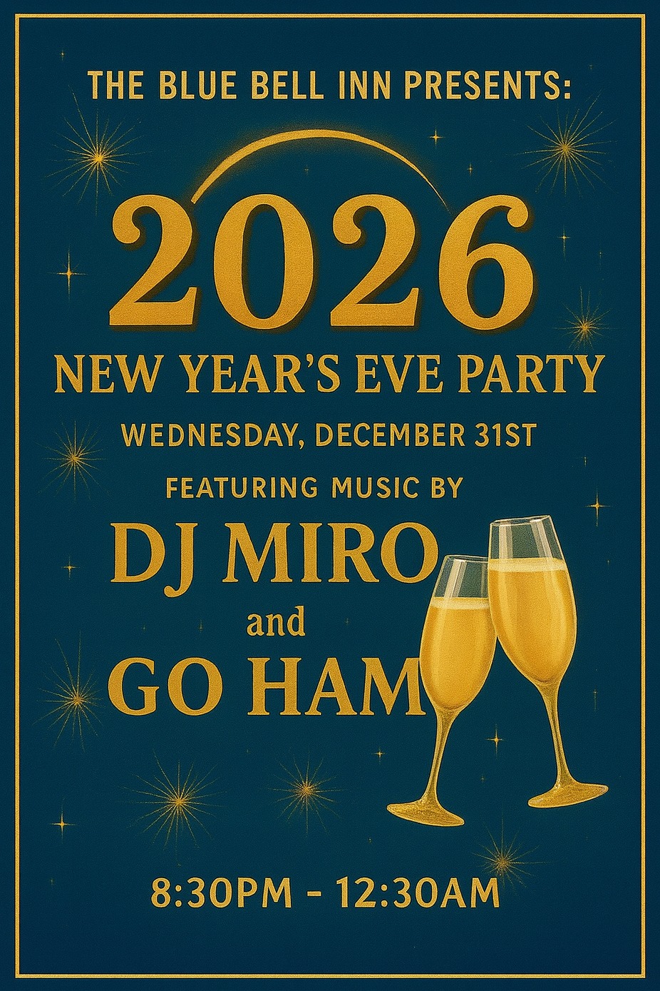 Celebrate New Year’s Eve 2026 in style! Join us for an electrifying night with DJ Miro and The Go Ham Band from 8:30 PM to 12:30 AM. Don’t forget to reserve your dinner table early—availability goes quickly!